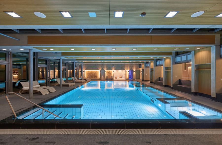Drei unterschiedliche Innen- und zwei Außensaunen, Massageräume, ein Hamam, ein Fitnessraum und eine Dream-Water-Loung.
