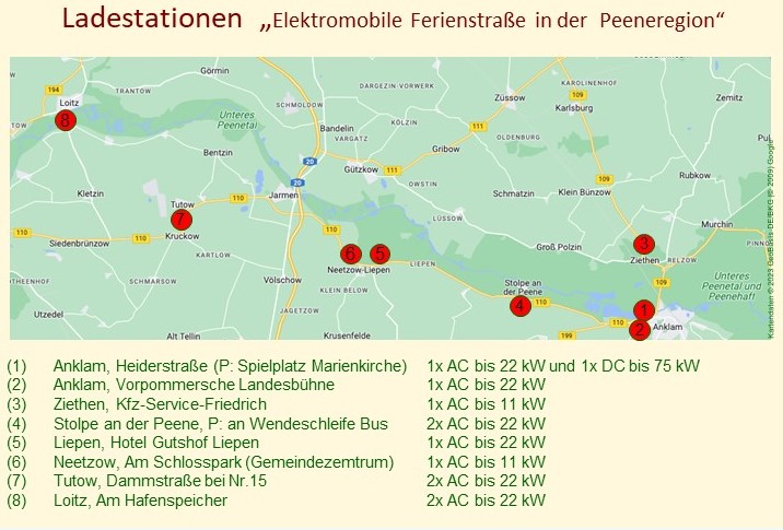 Der Verein VORPOMMERSCHE DORFSTRASSE e.V. schafft Voraussetzungen für den Einzug der E-Mobilität in die strukturschwache Peeneregion. Dabei erhält er ideelle Unterstützung durch die Inselwerke e.G. ((hier) und die Stiftung Akademie für Nachhaltige Entwicklung MV (hier) .